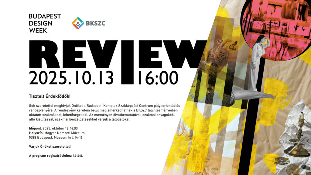 REVIEW – Szakmák a reflektorfényben! A Budapesti Komplex SZC pályaorientációs eseménye (divatbemutató, kiállítás, szakmai beszélgetések, információk szakmáinkról) További információ Az esemény ingyenes, de regisztrációhoz kötött: Regisztráció A rendezvény a Design Hét hivatalos eseménye. |